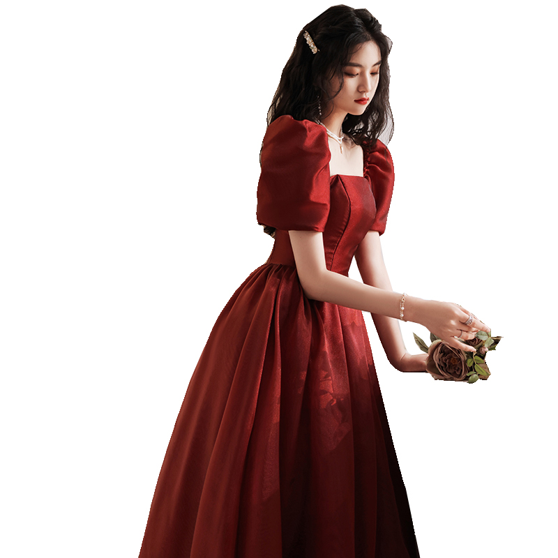 Toast clothing bride wine red advanced sense wedding dress fugitive princess engagement dress small pregnant women can wear summer