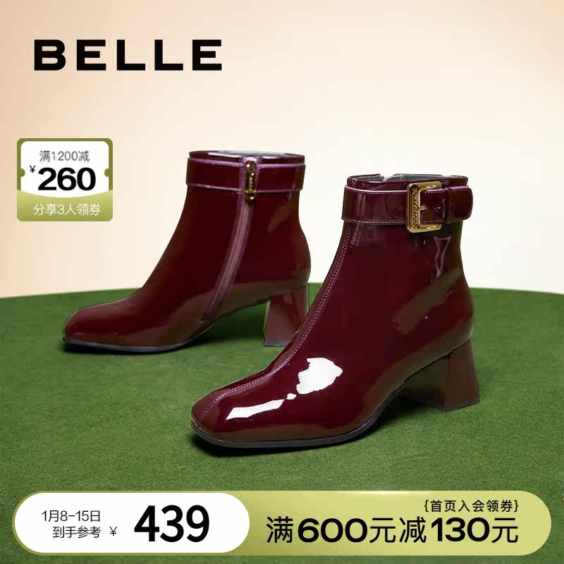 Thyme Lacquered Leather Fashion Boots Women's Winter Boots New Women Shoes Genuine Leather Coarse Heels Y5K1DDD2-Taobao