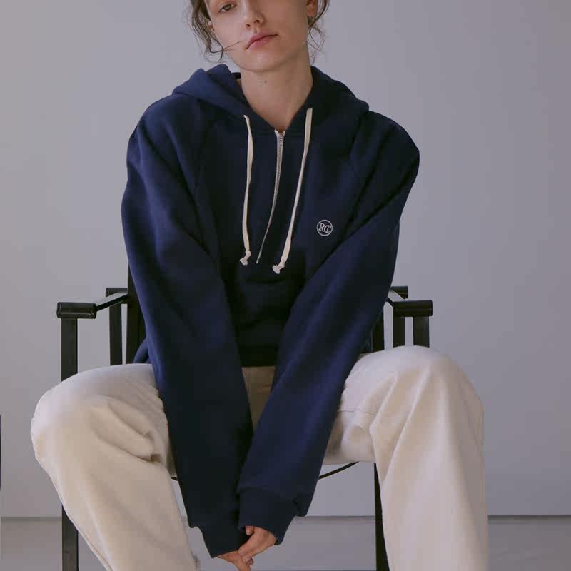 RECTO 22 Autumn and Winter Liu Yalen with semi-zip logo embroidery hood jacket in Korea