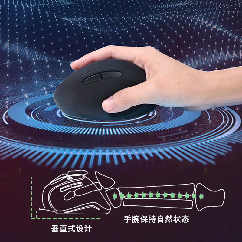 Girl's small hand uses ergonomic right-hand vertical mouse to hold a vertical wireless mouse for business office home use