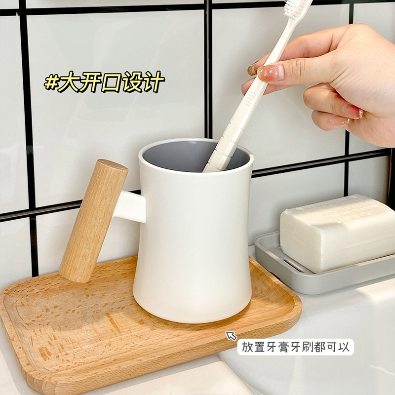 ins wind tooth cup mouthwash cup high-grade wooden handle wash cup student dormitory with simple bathroom toothbrush cup