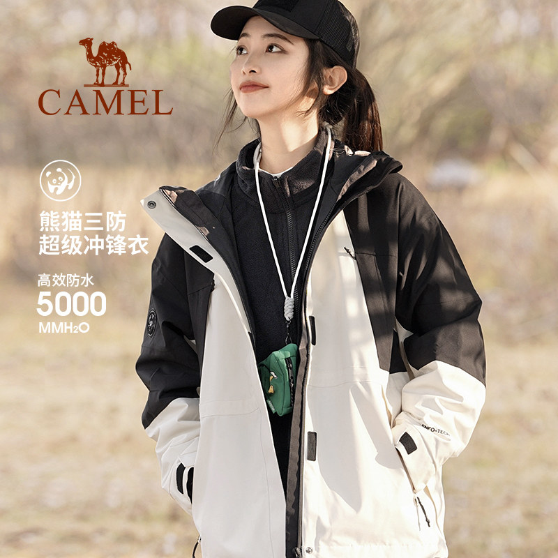 Panda Section Camel Submachine Clothing Woman Winter Grip Suede Liner Thickened Three-in-one Detachable Collage Tourist Jacket Man-Taobao