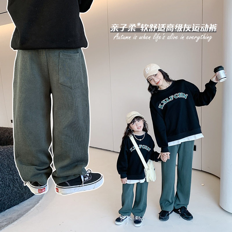 Family three trousers in autumn new casual pants beam pants and mother and child dress