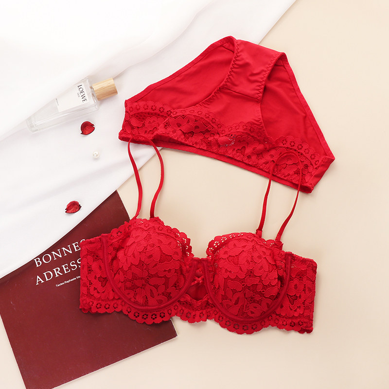 Red wedding bride lingerie woman ultra slim large breasted with small Ben life Rabbit Year Underwear Sexy Lace Bra Suit