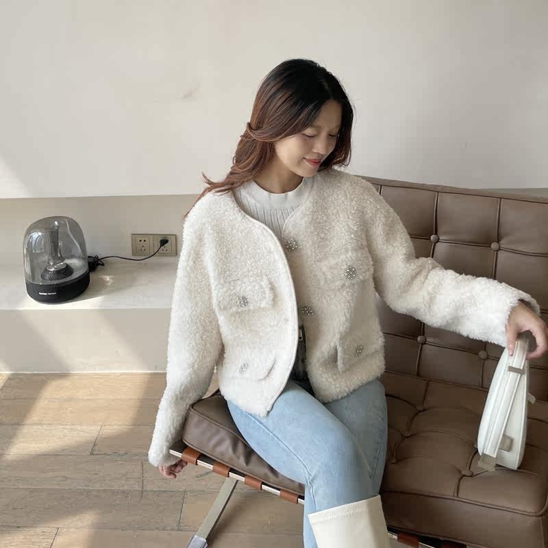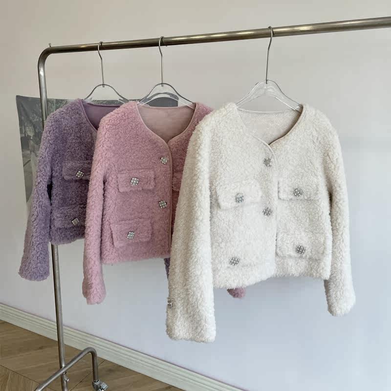 Xiaoxiangfeng 2022 new lamb wool coat women's fur diamond short sheep shearling coat fur one winter