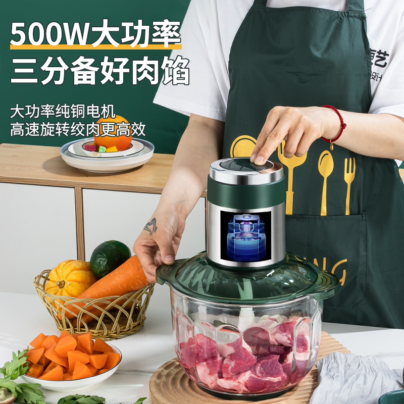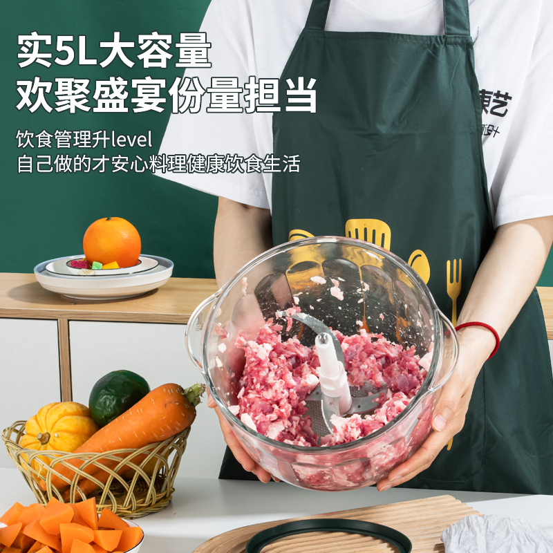 Shengao large-capacity glass 5L ground meat and vegetable cooking machine ground peanuts, minced garlic, walnut peppers, pure copper motor
