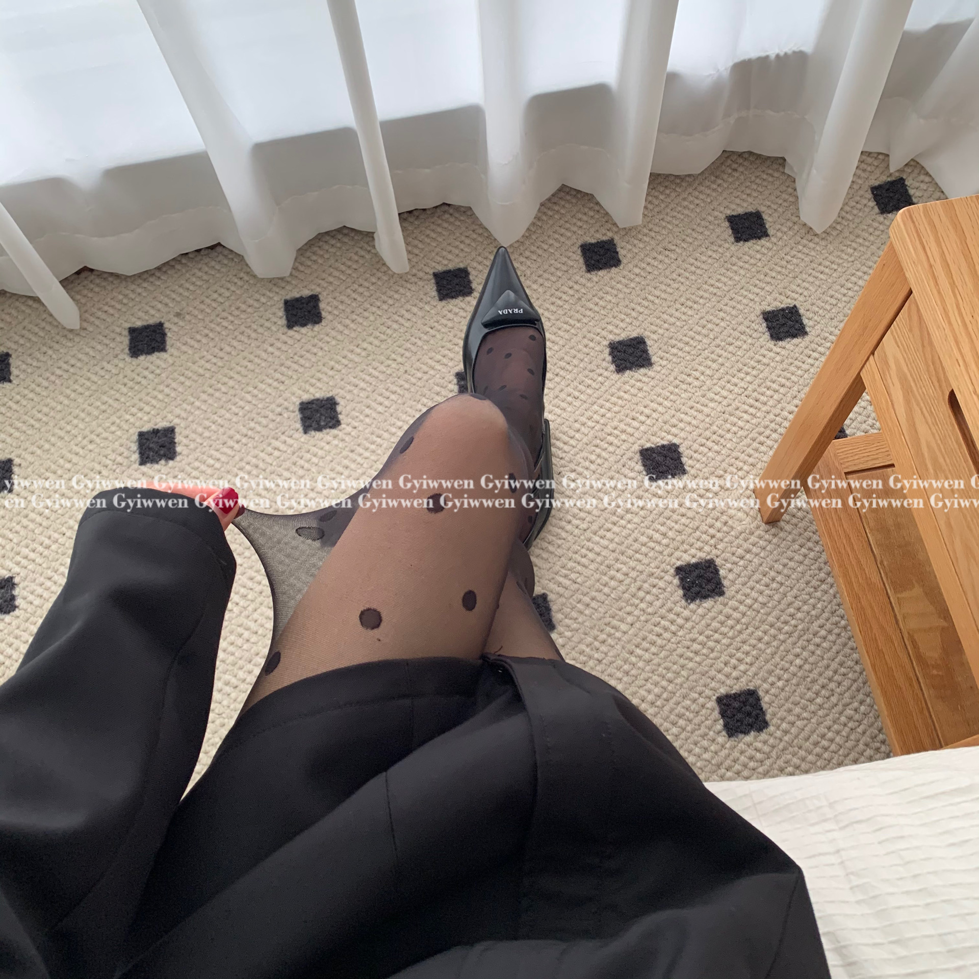 Gyiwen hot girl retro big wave dot silk stocking Yang power the same round dot printed with pants socks thin and sexy black silk-Taobao