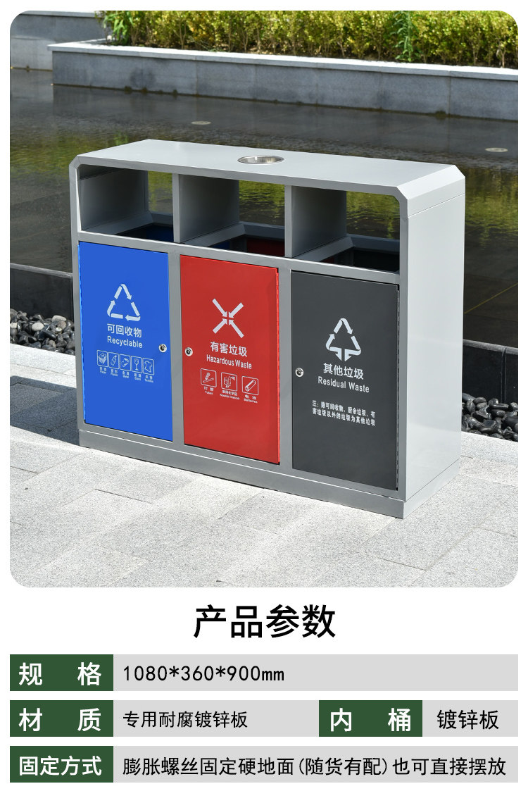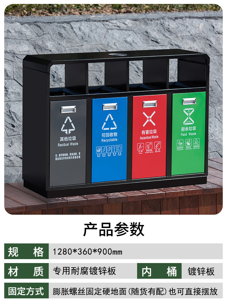 Outdoor stainless steel two-three-four classification large metal trash can sanitation outdoor community recycling peel box customization
