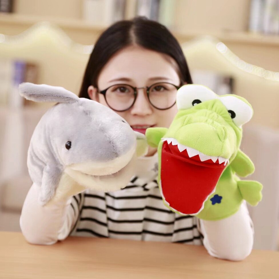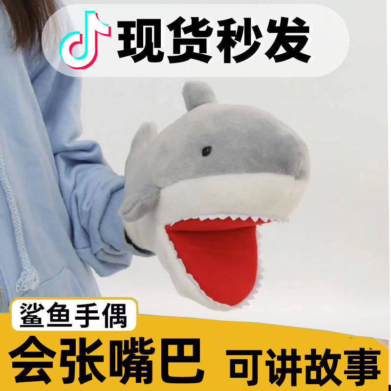 Small shark hand puppet gloves doll plush toy set hand shark arm head mouth doll mouth can move baby to appease