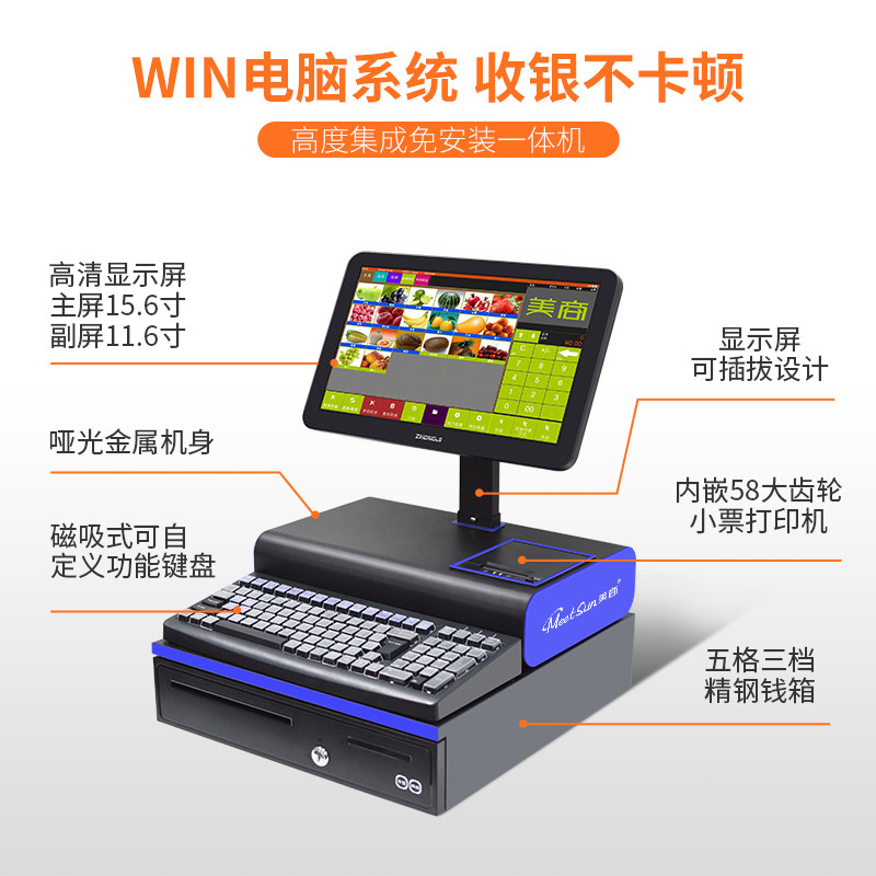 American business cash register supermarket cash register all-in-one cash register small commercial cash register dual-screen touch convenience store super retail cash register system electronic large-screen clothing fruit fresh weighing