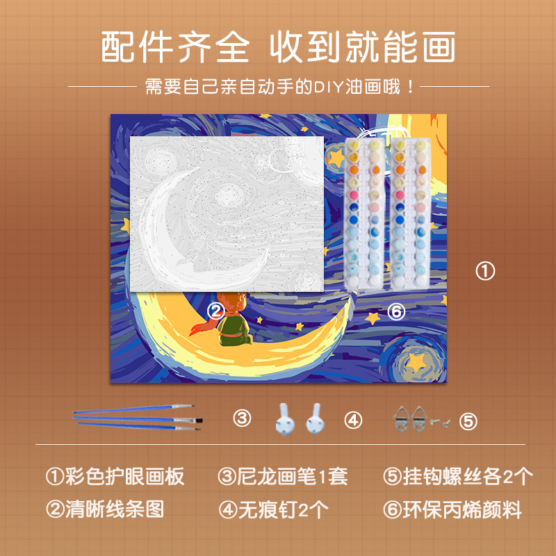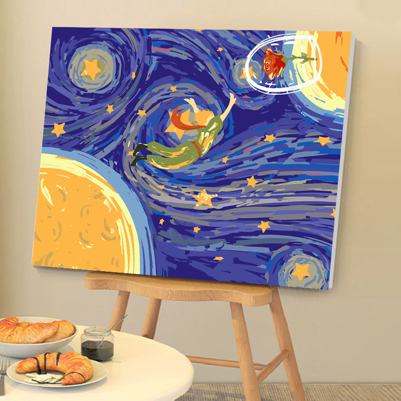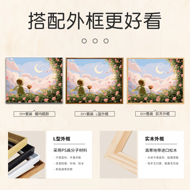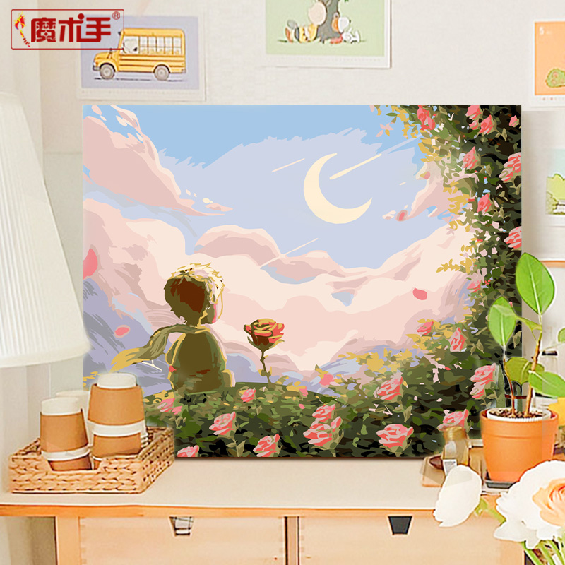 Small princes and rose -- diy digital oil painting stuffed with meritocratic cartoon hand-painted oil color drawing filled with color-Taobao
