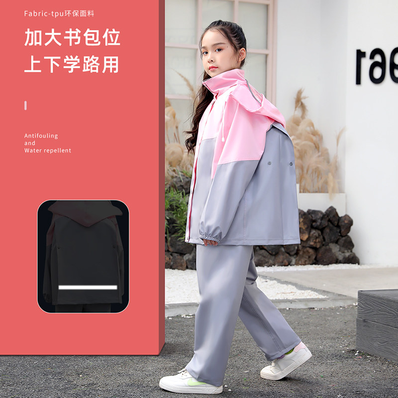 Children's raincoat suit boys and girls 2022 new elementary school pupils to school color - proof whole body split raincloak