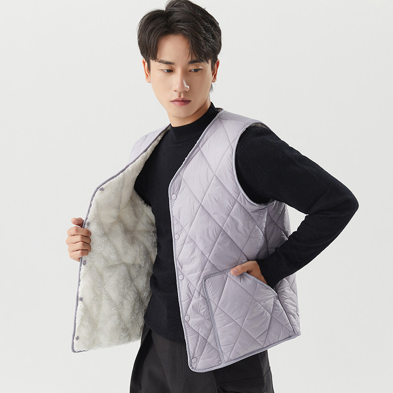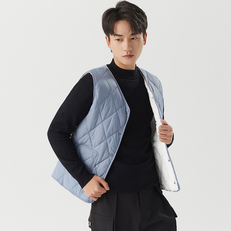 Down cotton waistcoat men's autumn winter plus suede thickened warm vest slats bottom liner Canshoulder wearing young student waistcoat-Taobao