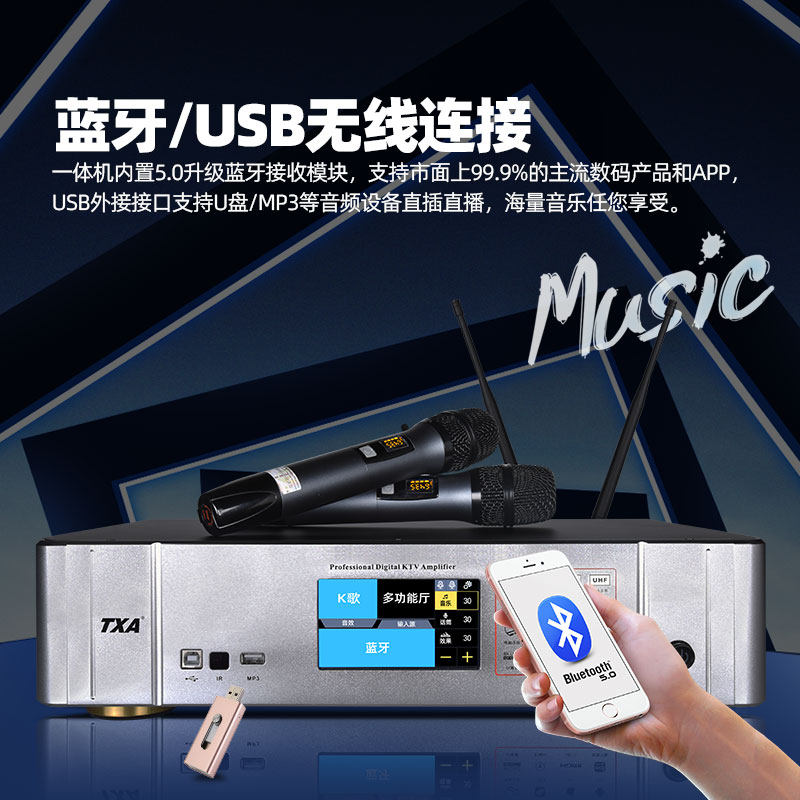 TXA Bluetooth Digital EffectWireless Microphone Power Player HIFI Home Karaoke Stage Multi-function Integrated Machine