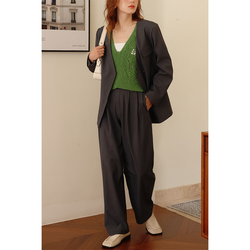 Deer and Birds Cream Gray Commuter Straight Casual Suit Pants (Industrial Age) 4526