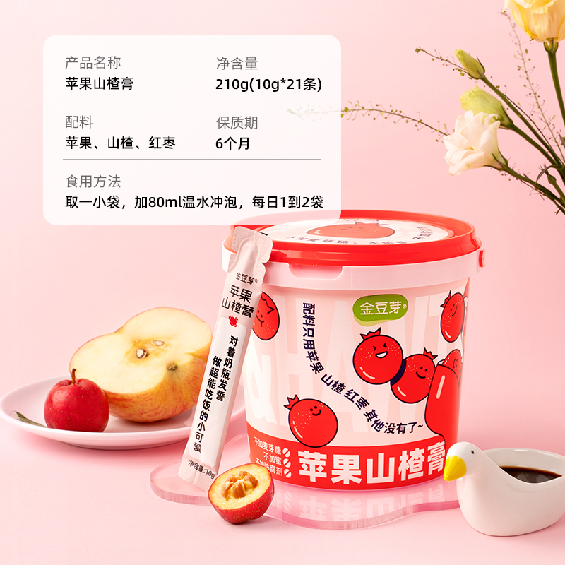 Golden bean sprouts appetizing a bucket of apple hawthorn cream elderly and children portable water-soaked hawthorn water office snack sharing