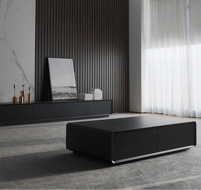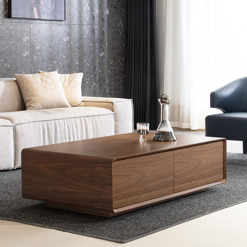 Nordic modern walnut coffee table rectangular simple modern size living room tea table light luxury TV cabinet set