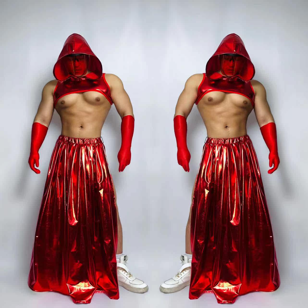 Sequin Suit Chest Strap Red Red Skirt Face Mask Women's Rose Red Sequin Suit