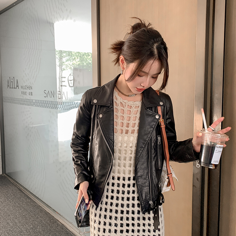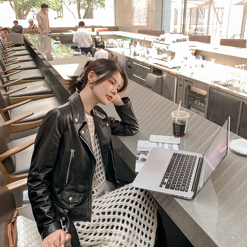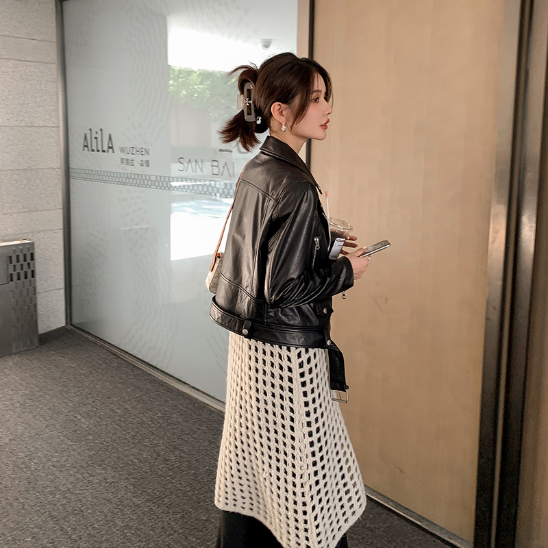 "in wax sensation" imported cow fur coat female car short vegetable tanning leather jacket leather coat
