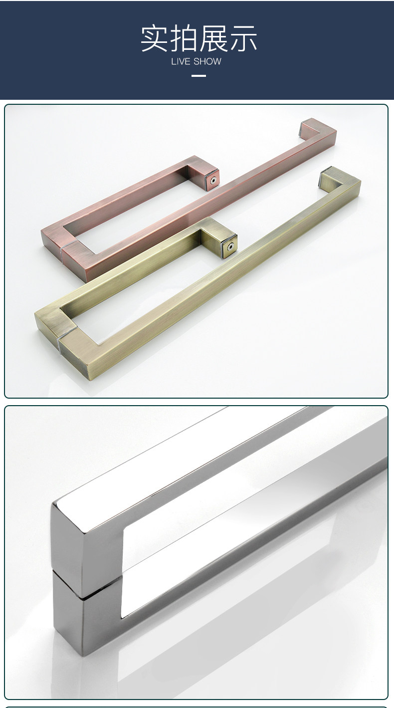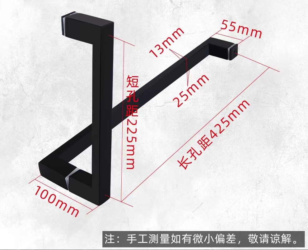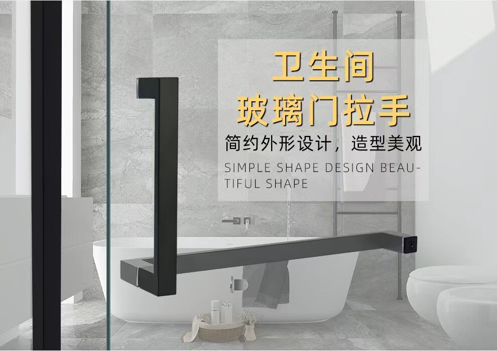 Shower room handle glass door sliding door bathroom door matte black gun gray L-shaped single-mounted stainless steel handle