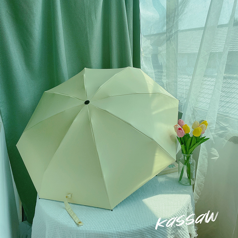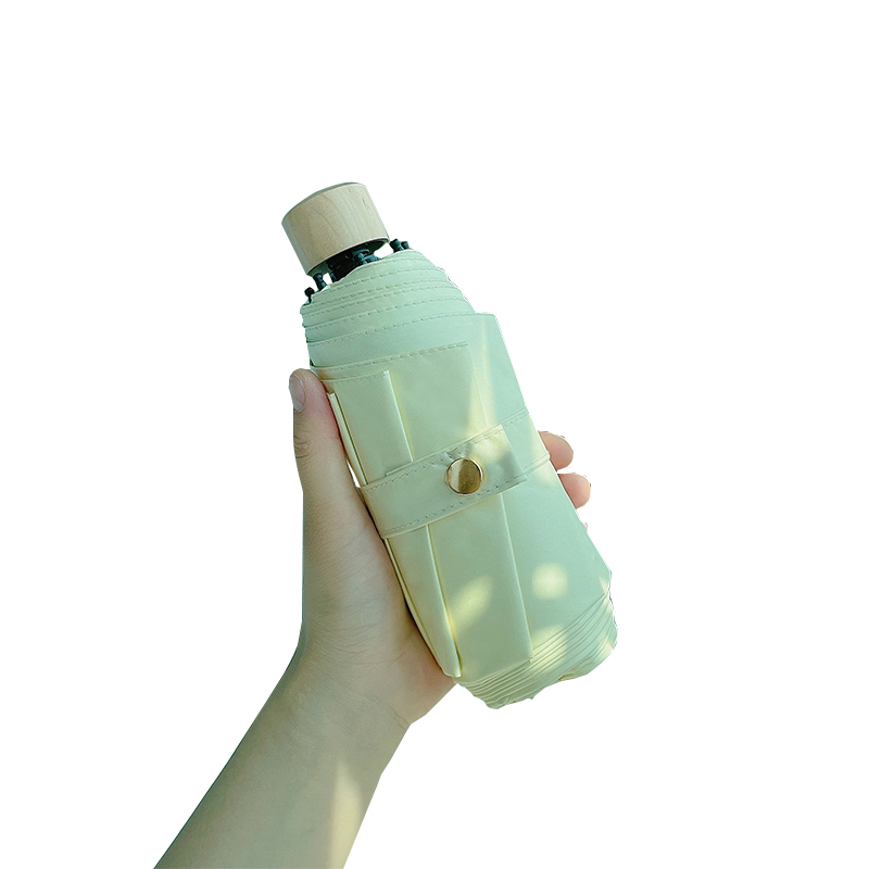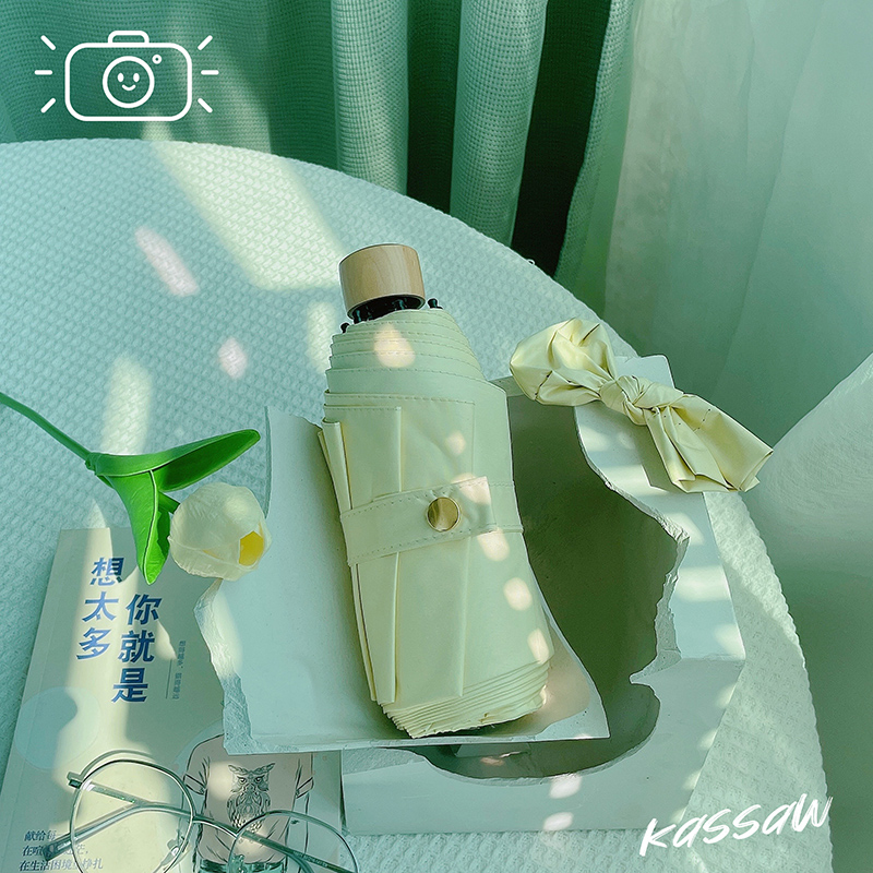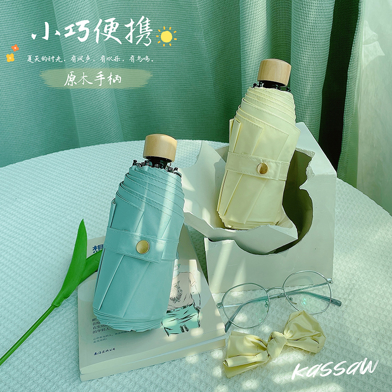 ins cream wooden handle sun umbrella women's folding umbrella sunny and rainy dual-use anti-ultraviolet small portable sunshade