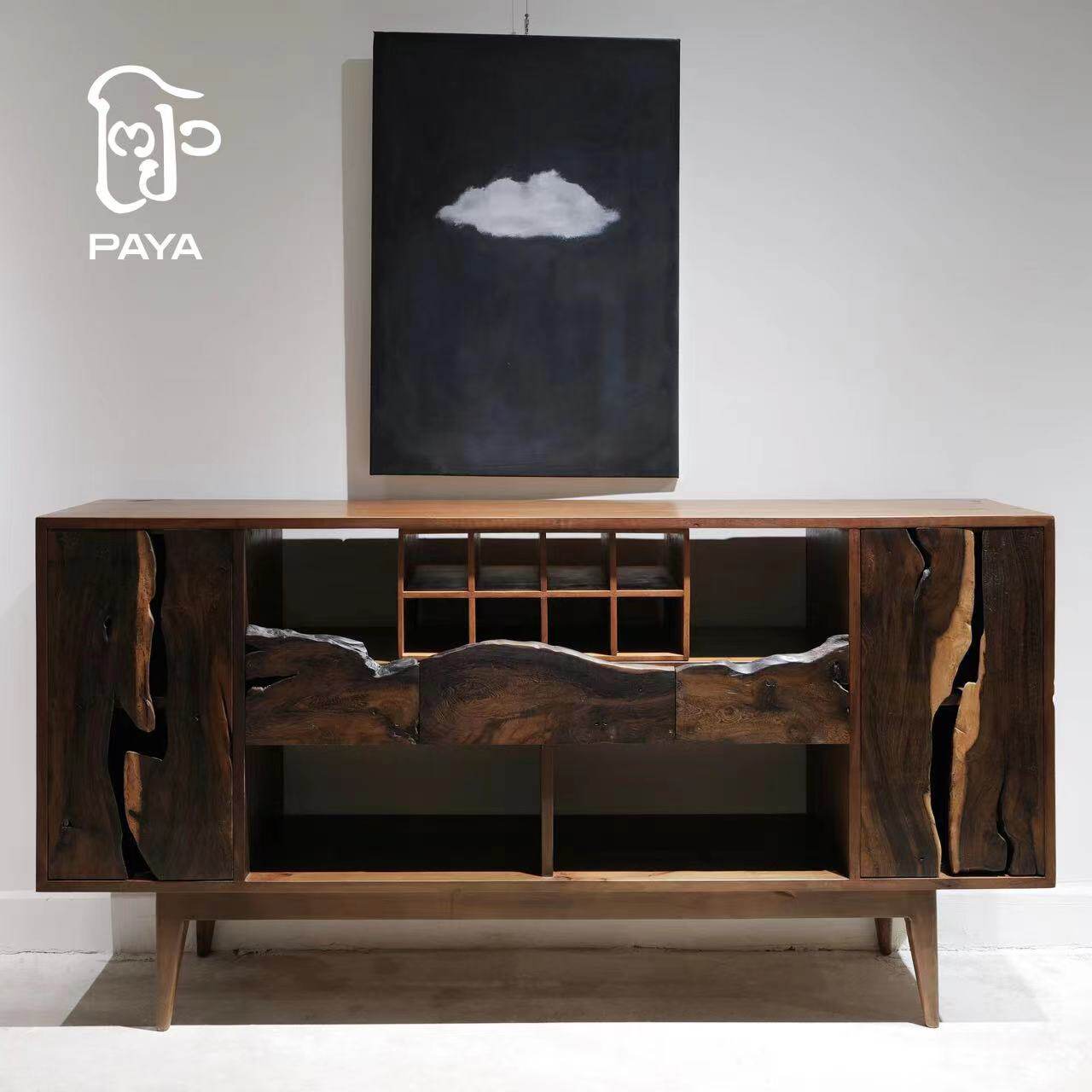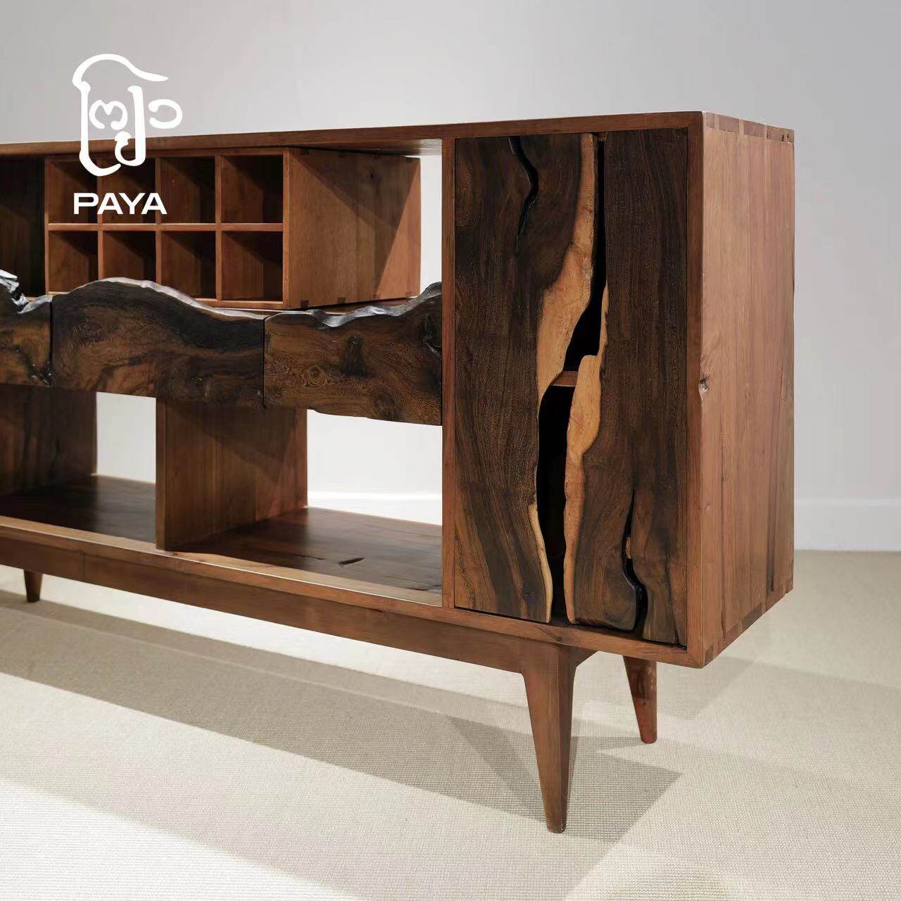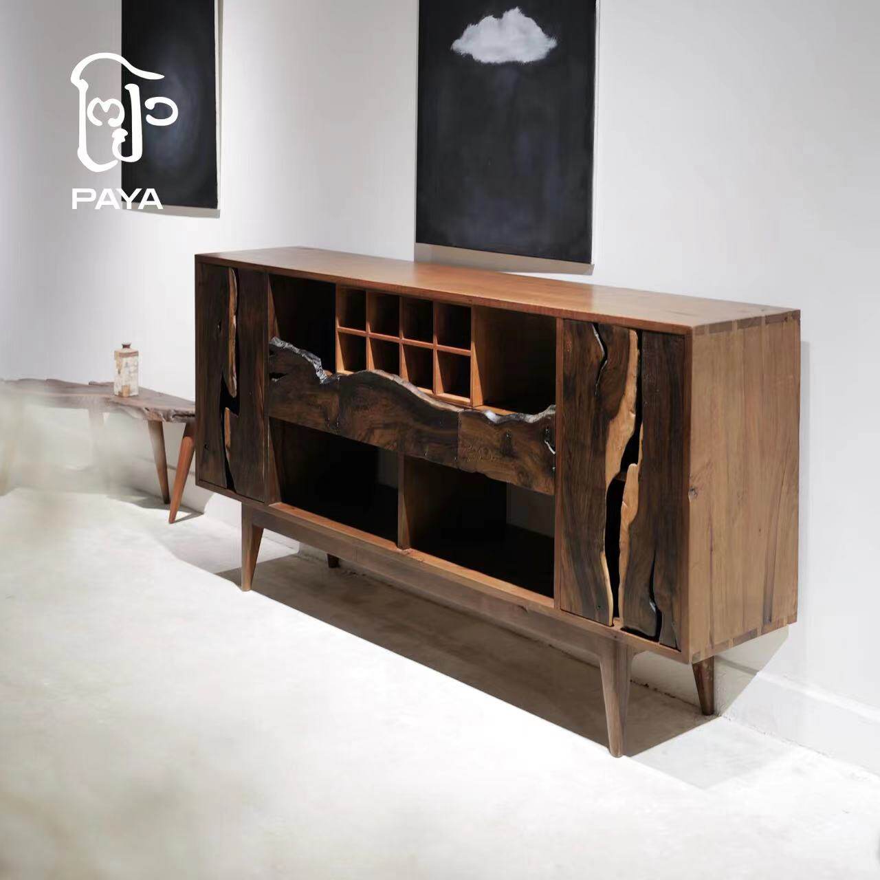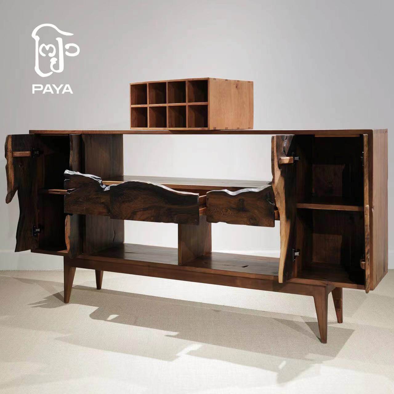 Paja Gumu Mountain Ridge Line Long Cabinet Solid Wood Dining Side Cabinet Original Design Afield Wood With Type Panel Side Cabinet-Taobao