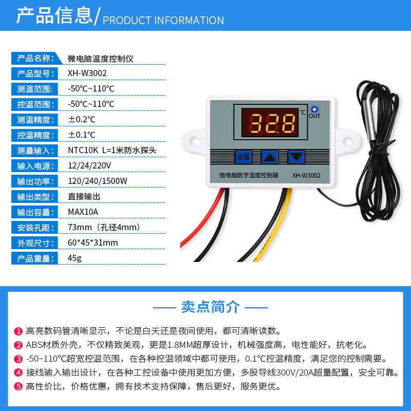 Thermometer digital display intelligent XH-W3002 microcomputer digital temperature controller electronic temperature control switch temperature controller