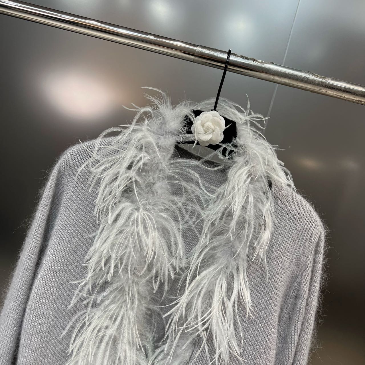 MM 2022 Fall ostrich fur decorated long sleeve with pure temperament in wind knitted sweater