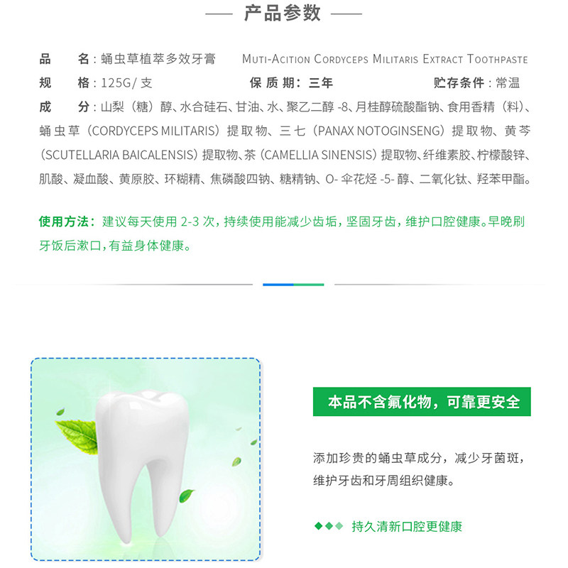 Yandi Cordyceps militaris plant extract multi-effect toothpaste whitening teeth to yellow to remove tooth stains, fresh breath, bad breath and anti-moth