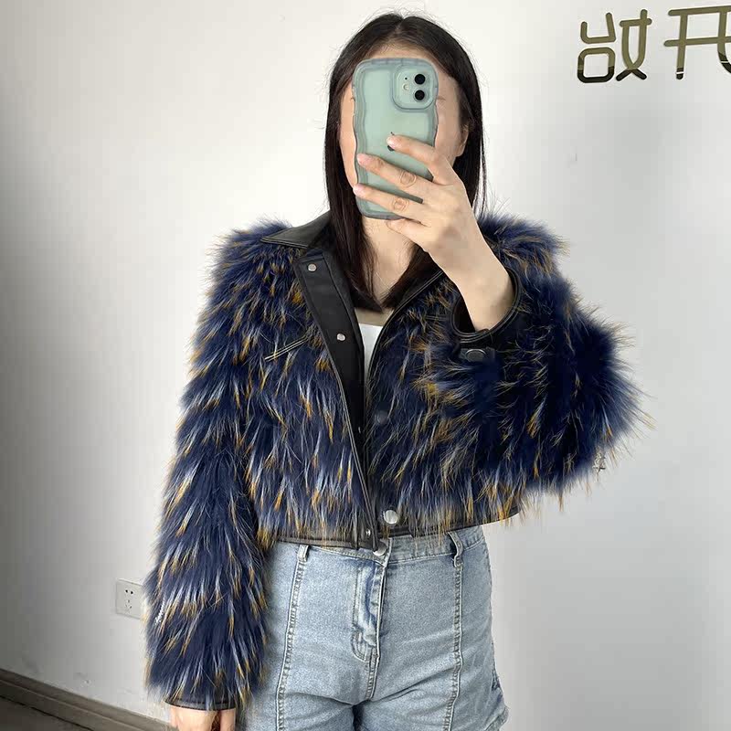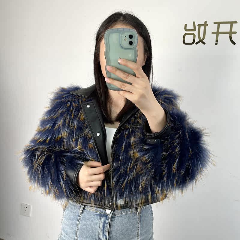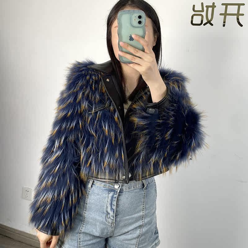 2022 winter new raccoon fur coat female Haining fashion short tassel car strip fur coat