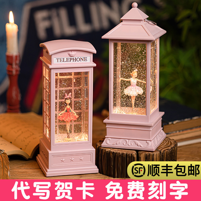 Dream lights Multi-first music Automatic drifting snow (free lettering away with hand bag) Wind light powder ballet-pink frame-The inner view can be rotated with fine gift bag (upgrade 12 first music) wind light
