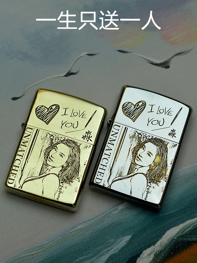 Lighter zippo genuine shell custom photo pure copper lettering armor sterling silver men's gift windproof kerosene