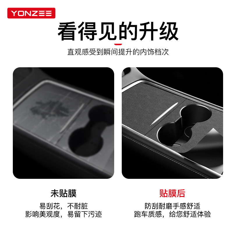 Model 3 Huan new version-Carbon fiber print-medium control panel protective patch (top worthy quality-upgraded section) Original plant Top-fit -Model3 Y solid wood panel ultra-thin section (original car wood grain interior