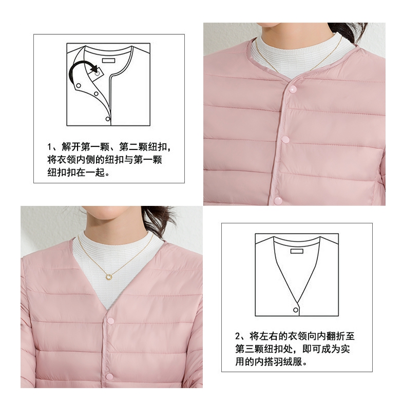 2023 new light and thin down cotton clothes woman short autumn winter liner cotton clothes round collar V collar two wear cotton padded jacket-Taobao