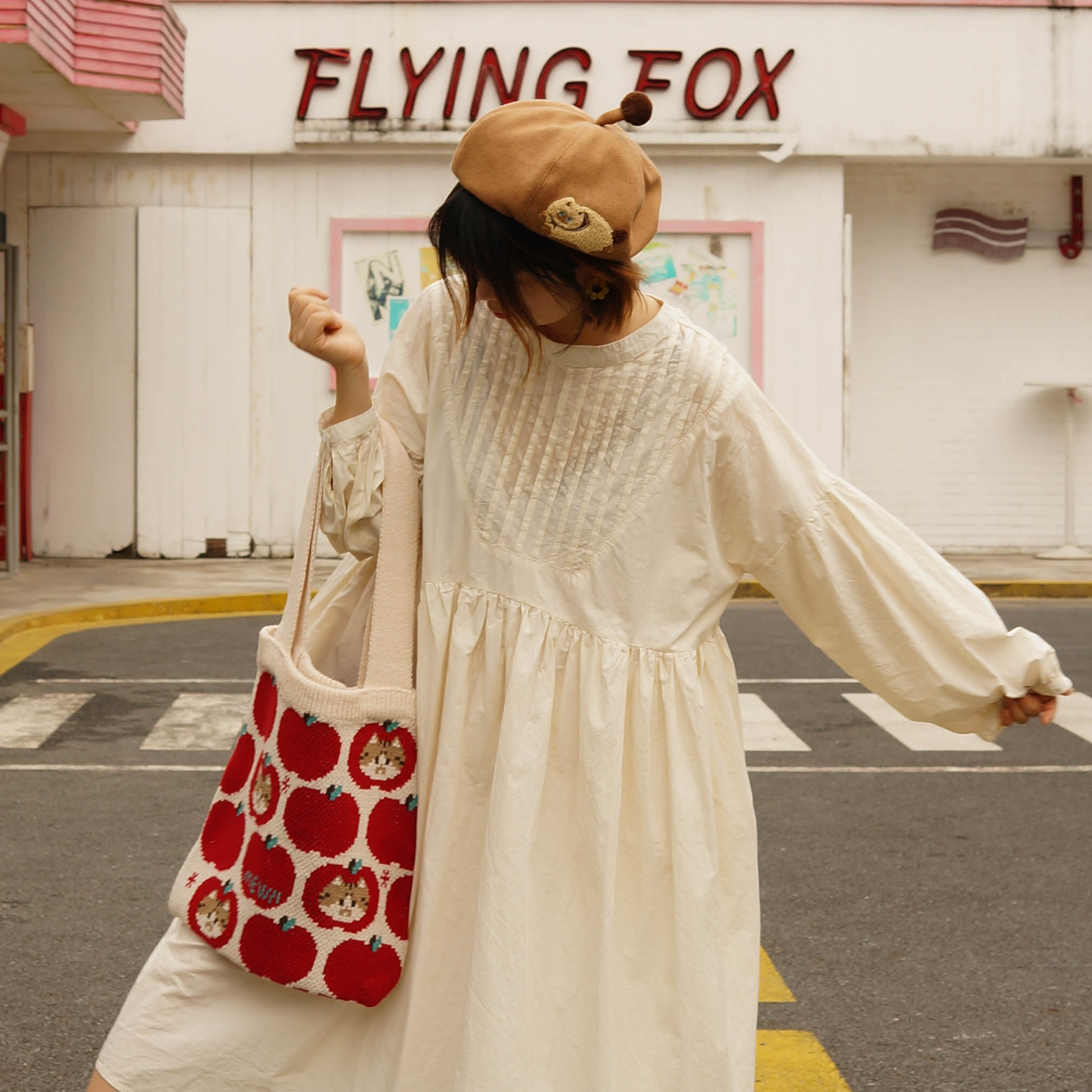 MEWJI MYIMGI Original Cat Japanese Cute Girl Retro Apple Knitted Casual Bag