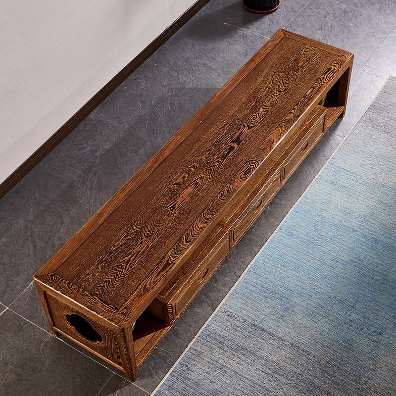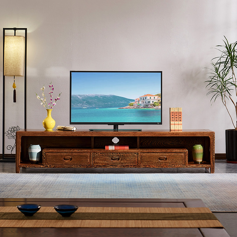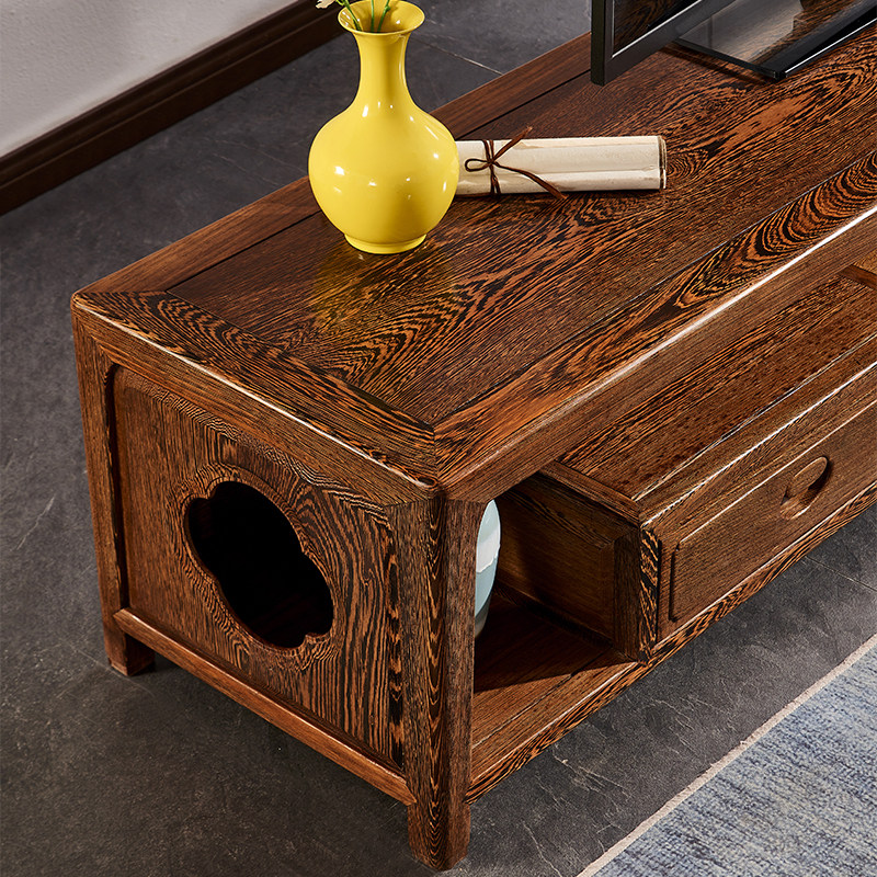 Mahogany Begonia TV cabinet all solid wood chicken wing wood new Chinese style plain surface three drawers living room furniture storage floor cabinet
