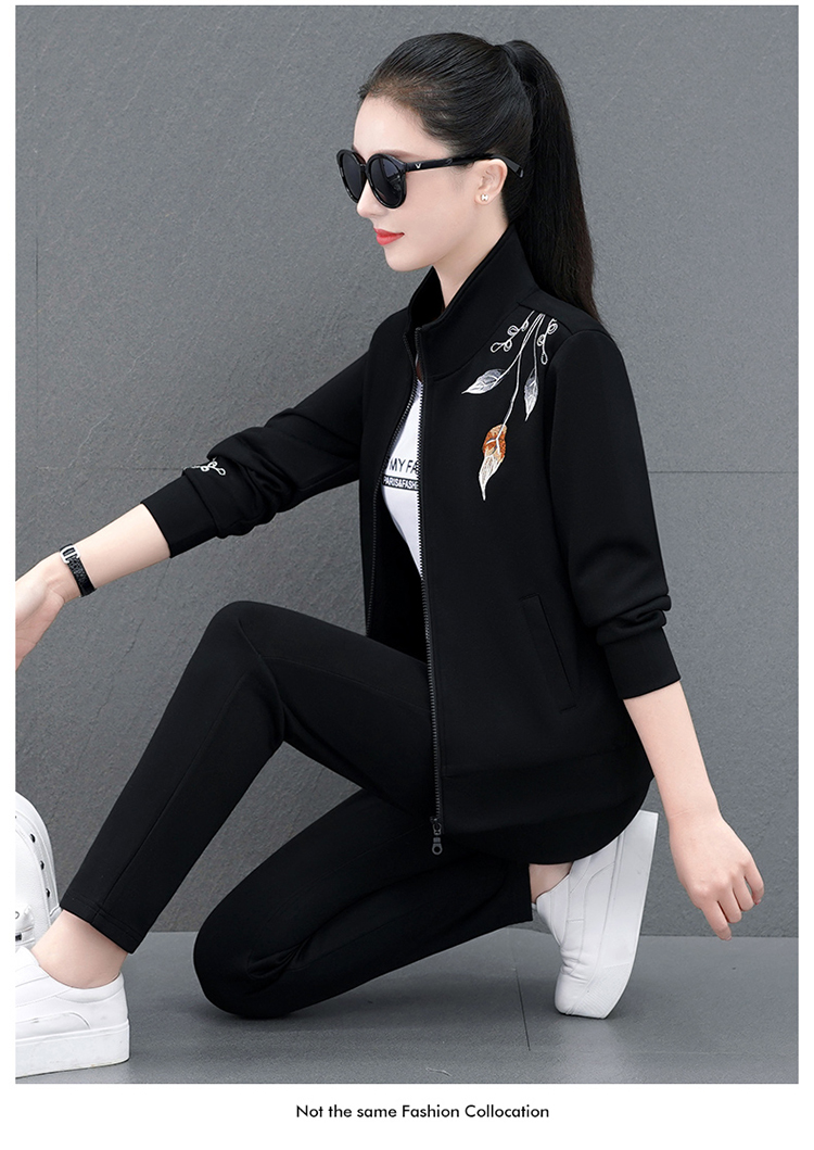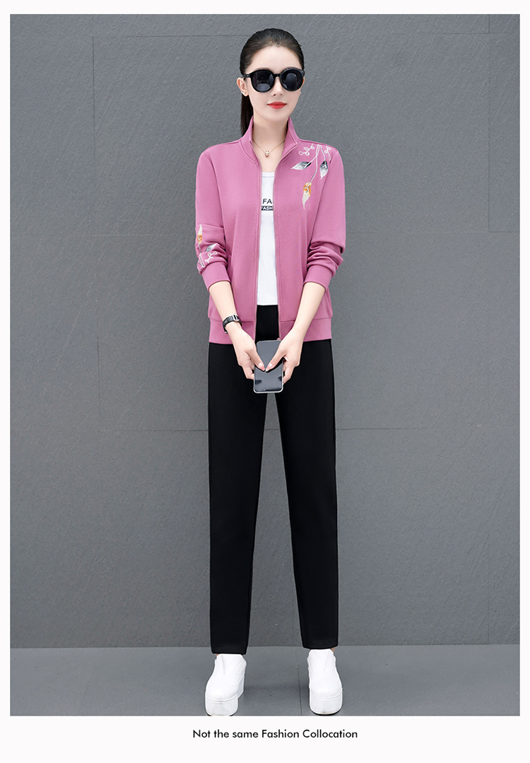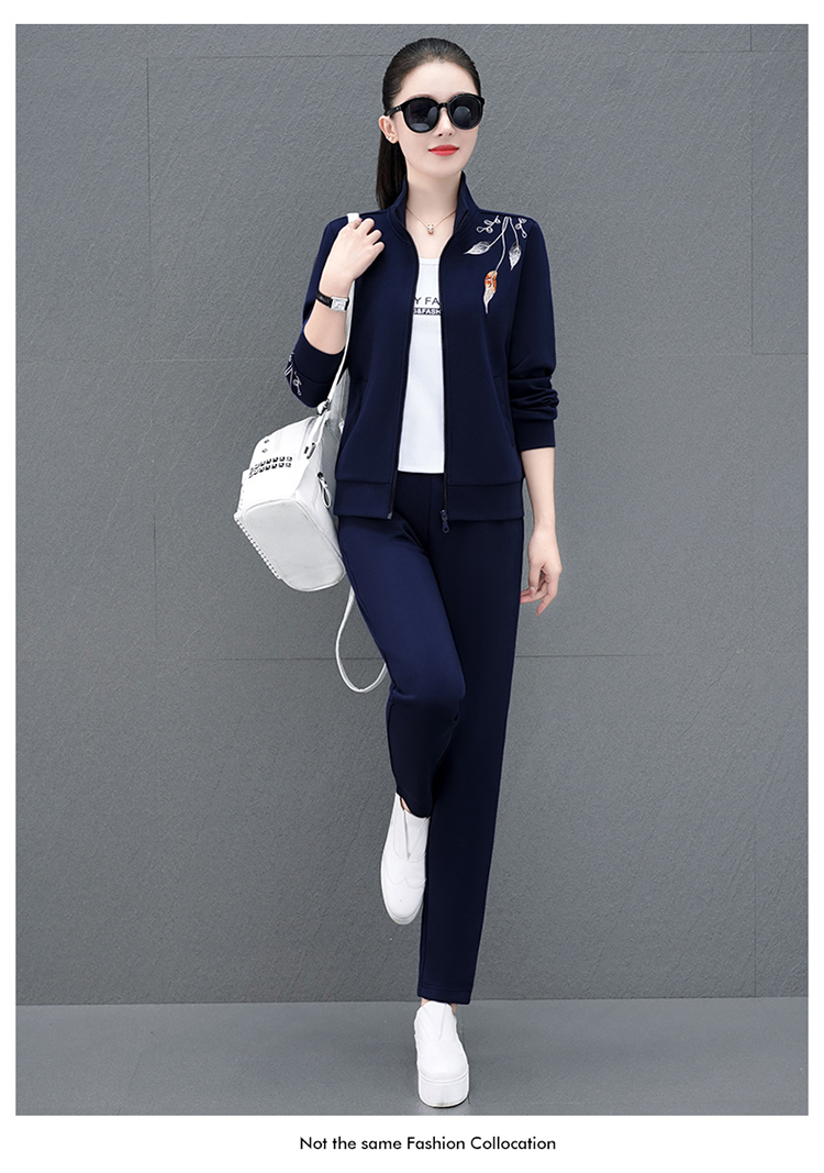 Brand middle-aged mother spring and autumn sports clover suit women's casual jacket foreign style large size three-piece trendy