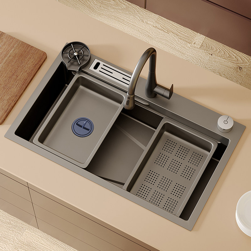TUTN sink nano multifunction large single tank kitchen washing basin home stainless steel dishwashing pool C-02-Taobao