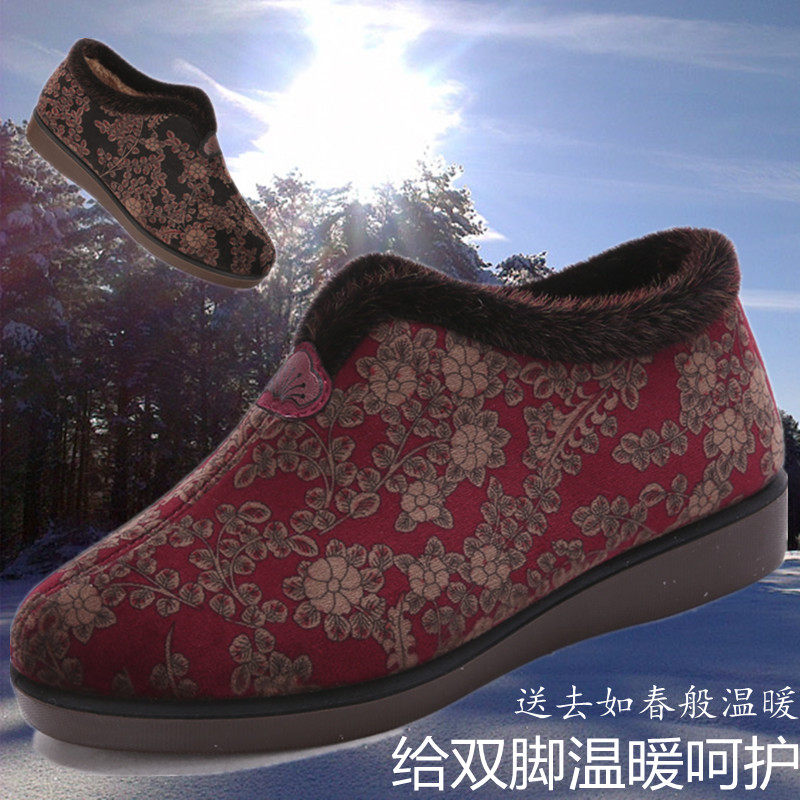 Special warmth and thickening grandma cotton shoes plus anti-slip comfort old lady thick soles old Beijing winter shoes