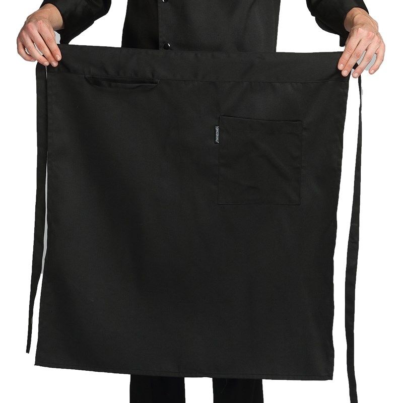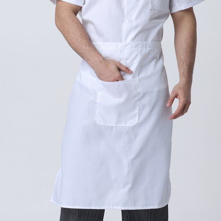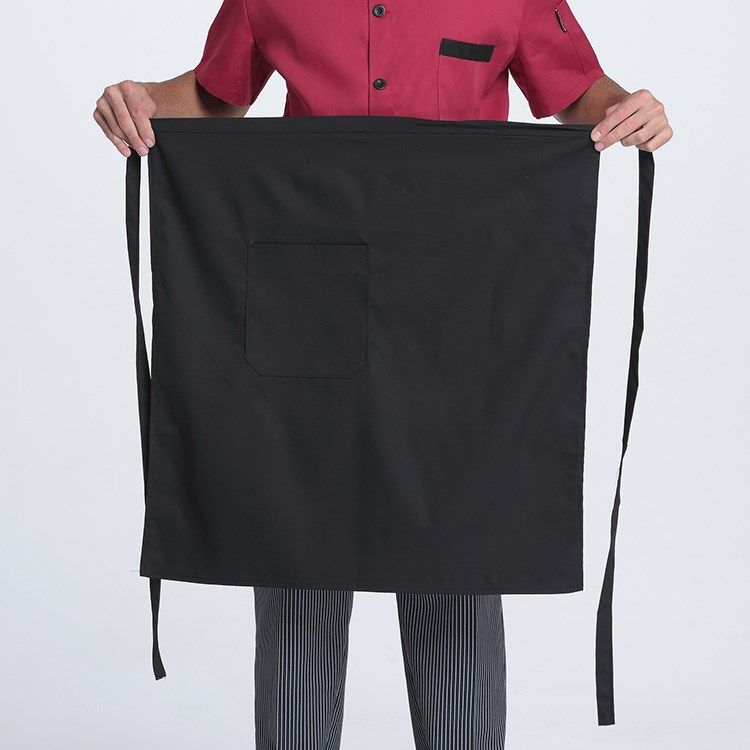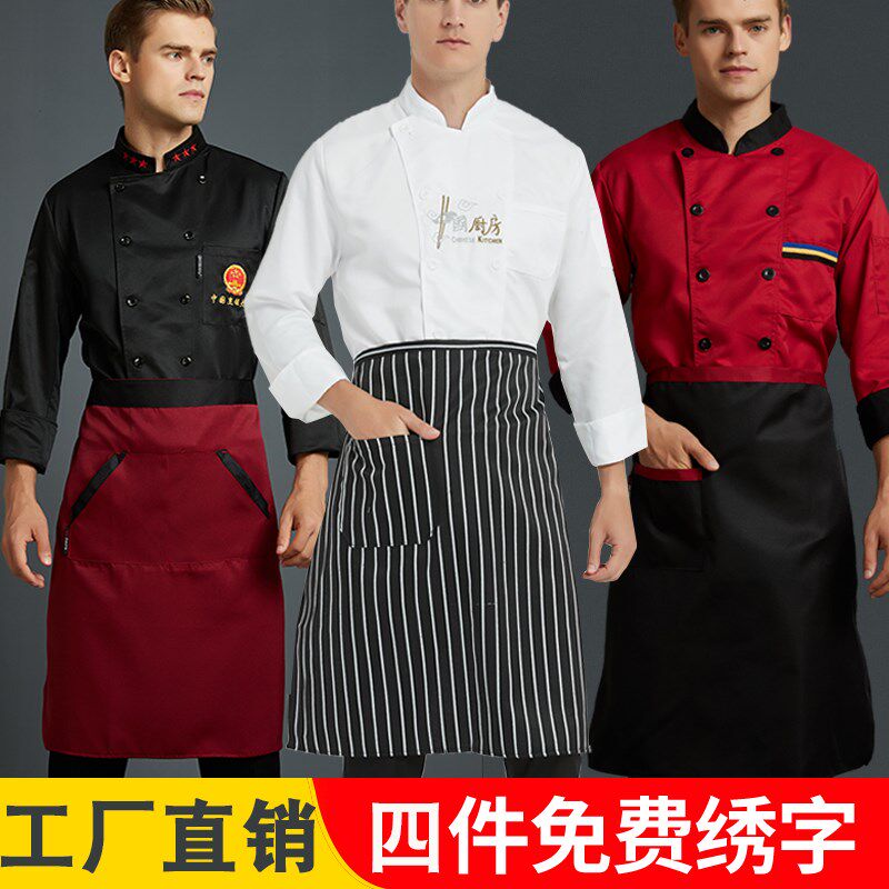 All white (half body) full black (half body) recommended maroon apron black belt (half body) knife and fork pattern (half body) pepper (half body) red and white stripes (half body) black red belt (half body)
