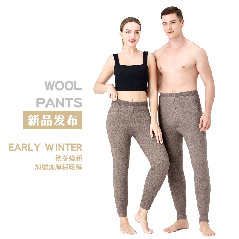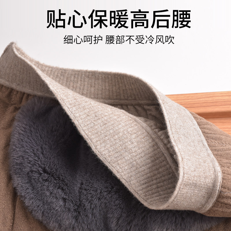 Men's 100% wool pants thickened and velvet five-layer camel wool warm pants women's middle-aged and elderly high-waist extra-thick cotton pants winter