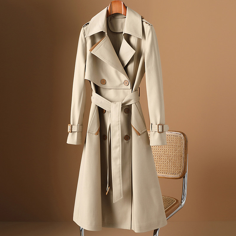 European Station senior high - end European windshirt woman 2023 new British spring and autumn long coat big coat