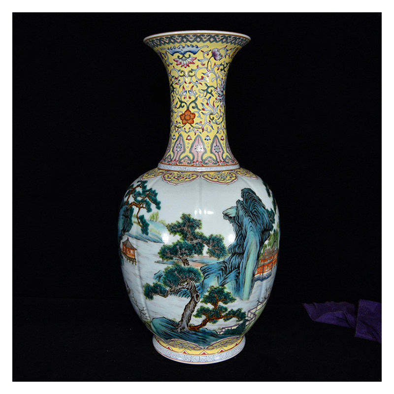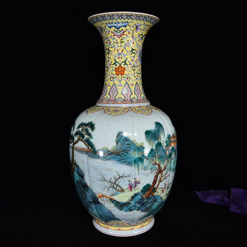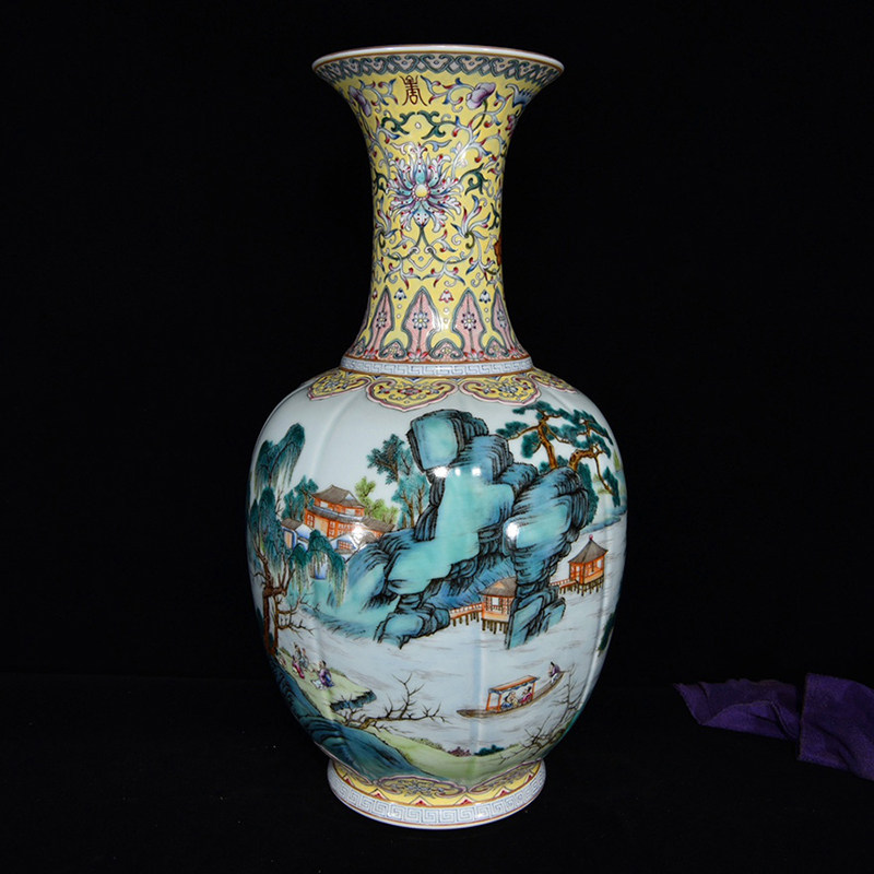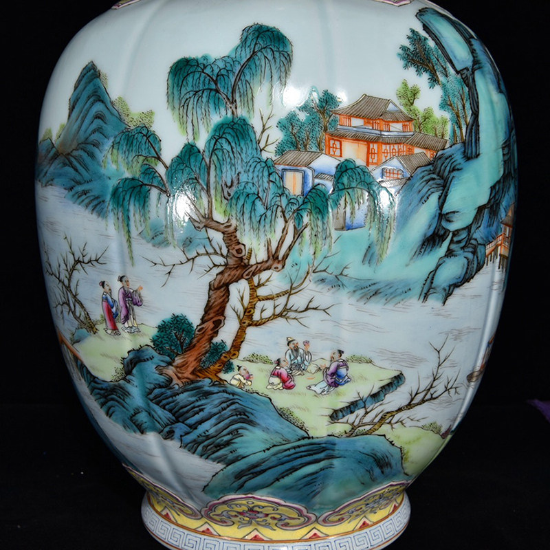 LY0809 Qingqianlong style pastel-colored landscape pavilion and pavilion pattern bottle