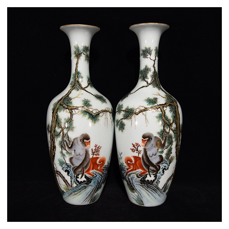 LY0827 Old Tibetan Qingqianlong style pastel monkey pattern bottle