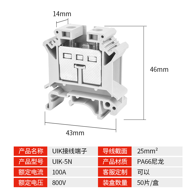 Manufacturers direct copper piece UK25N terminal block wiring 25 square UK-25N