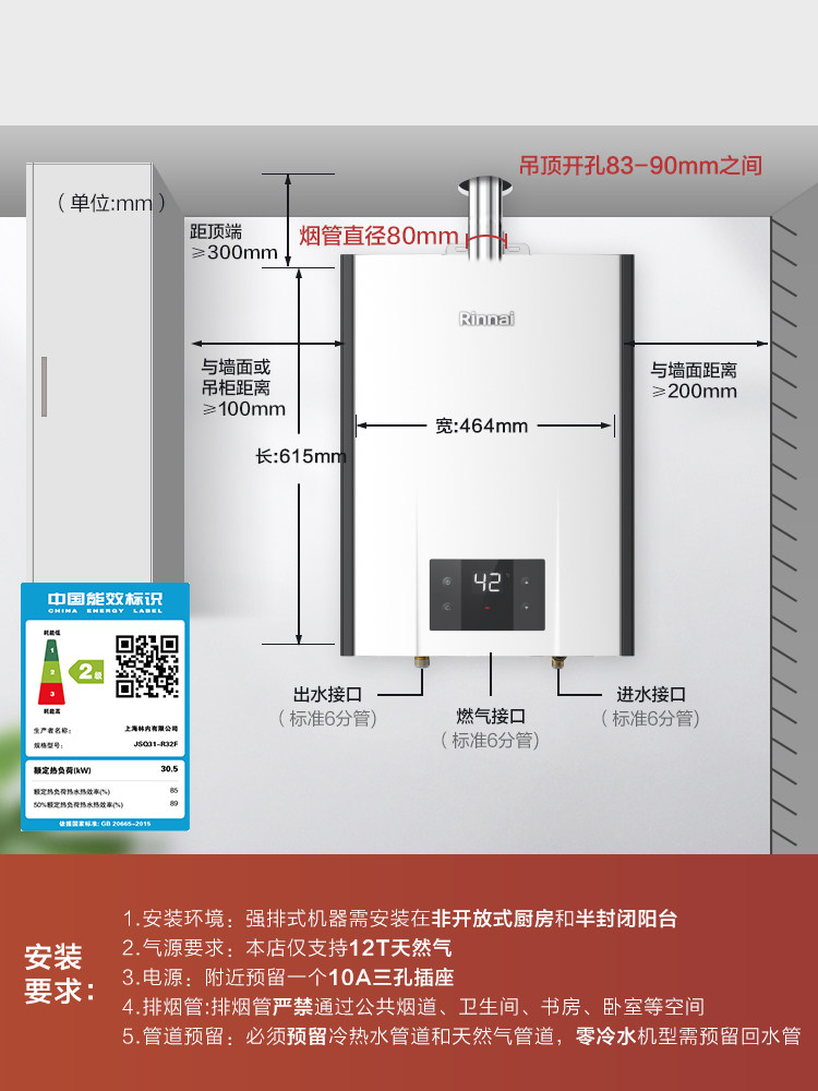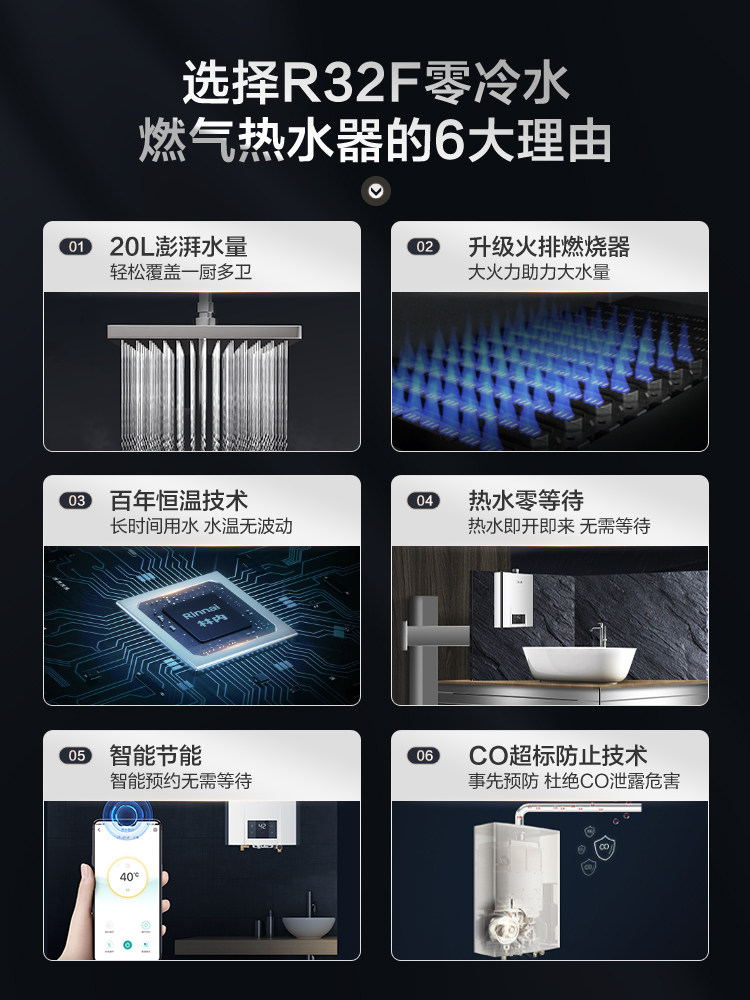 Rinne Evercomfort Zero cold water gas water heater Home thermostatic natural gas Smart safety bath 20 l R32F-Taobao