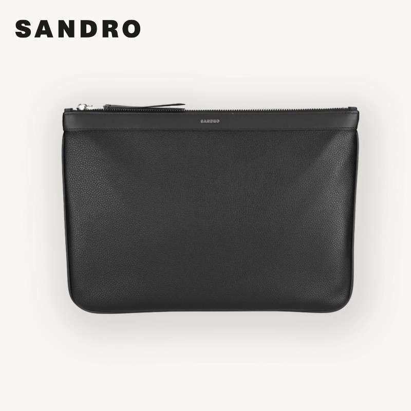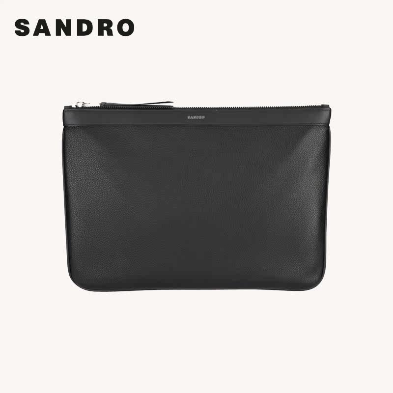 SANDRO Spring-autumn-style men's black business zipper opening and closing brand logo briefcase SHASA00860-Taobao