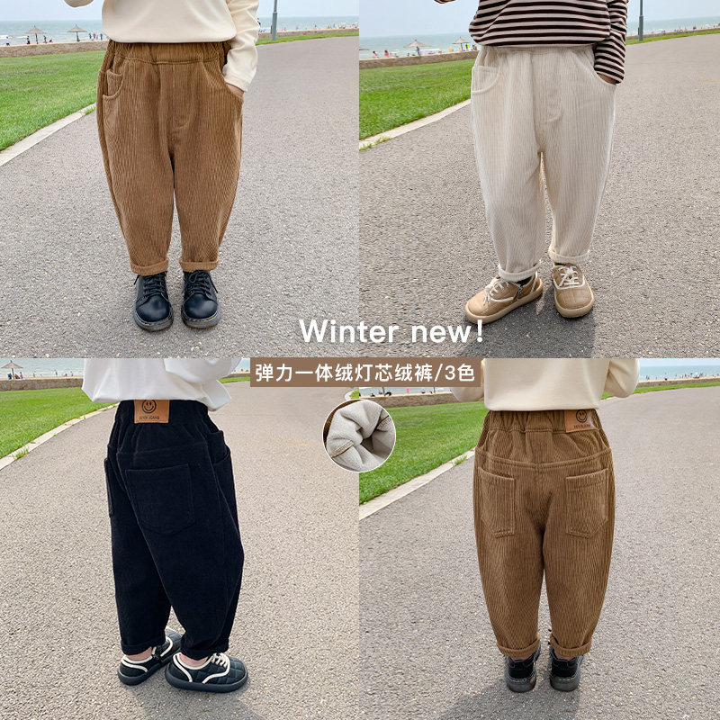 Boy gush pants integrated suede Children casual pants Boys Winter Thickening Baby Autumn Winter Style Boy Winter Clothing Tide-Taobao
