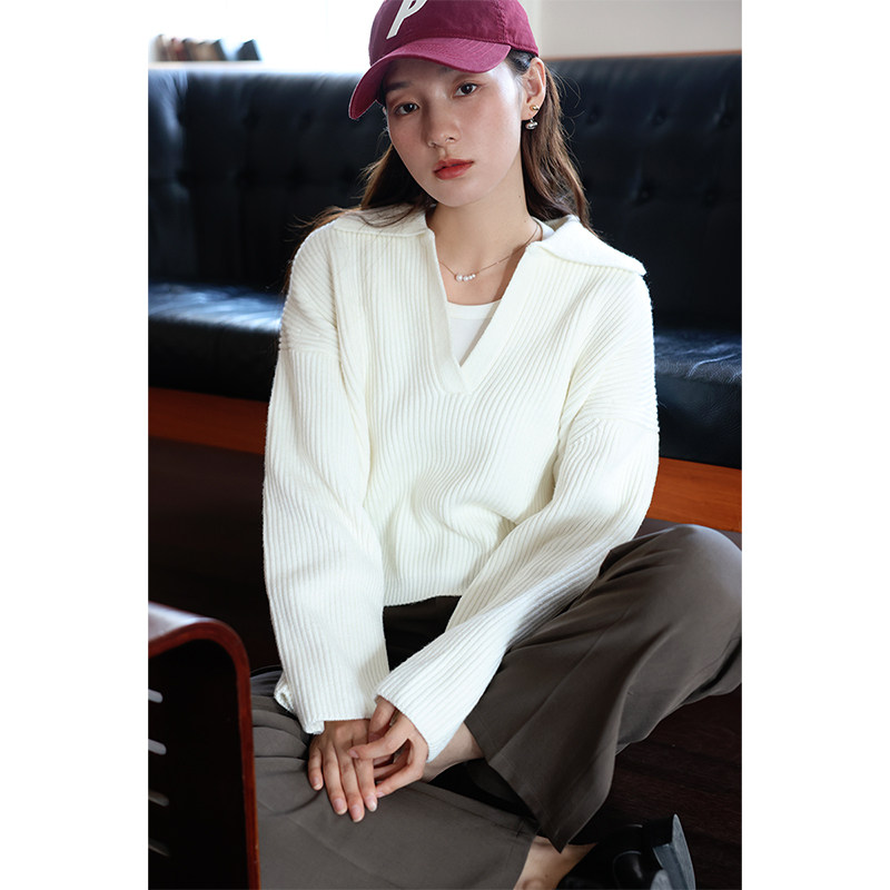 3 pieces 8 fold Spring V-collar polo overlaid with a knitted sweater 2 color (home party) 4194