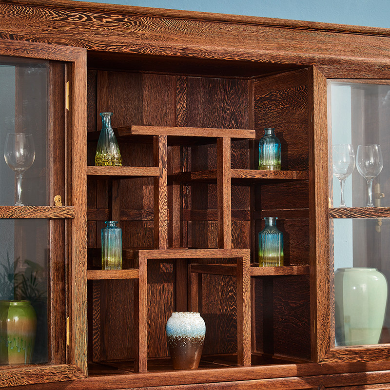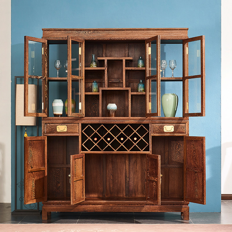 Mahogany luxury wine cabinet chicken wing wood new Chinese style plain surface multi-functional storage display cabinet all solid wood furniture